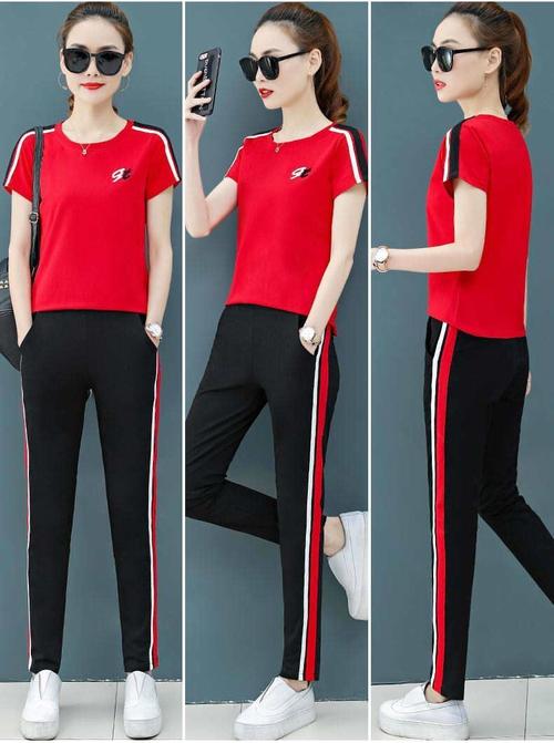 國(guó)貨運(yùn)動(dòng)短袖套裝女女式運(yùn)動(dòng)短袖套裝