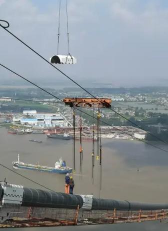 接下來(lái),將鋼繩從新承臺(tái)下方穿過(guò),并與下一段索道的震斷拉索連接。
